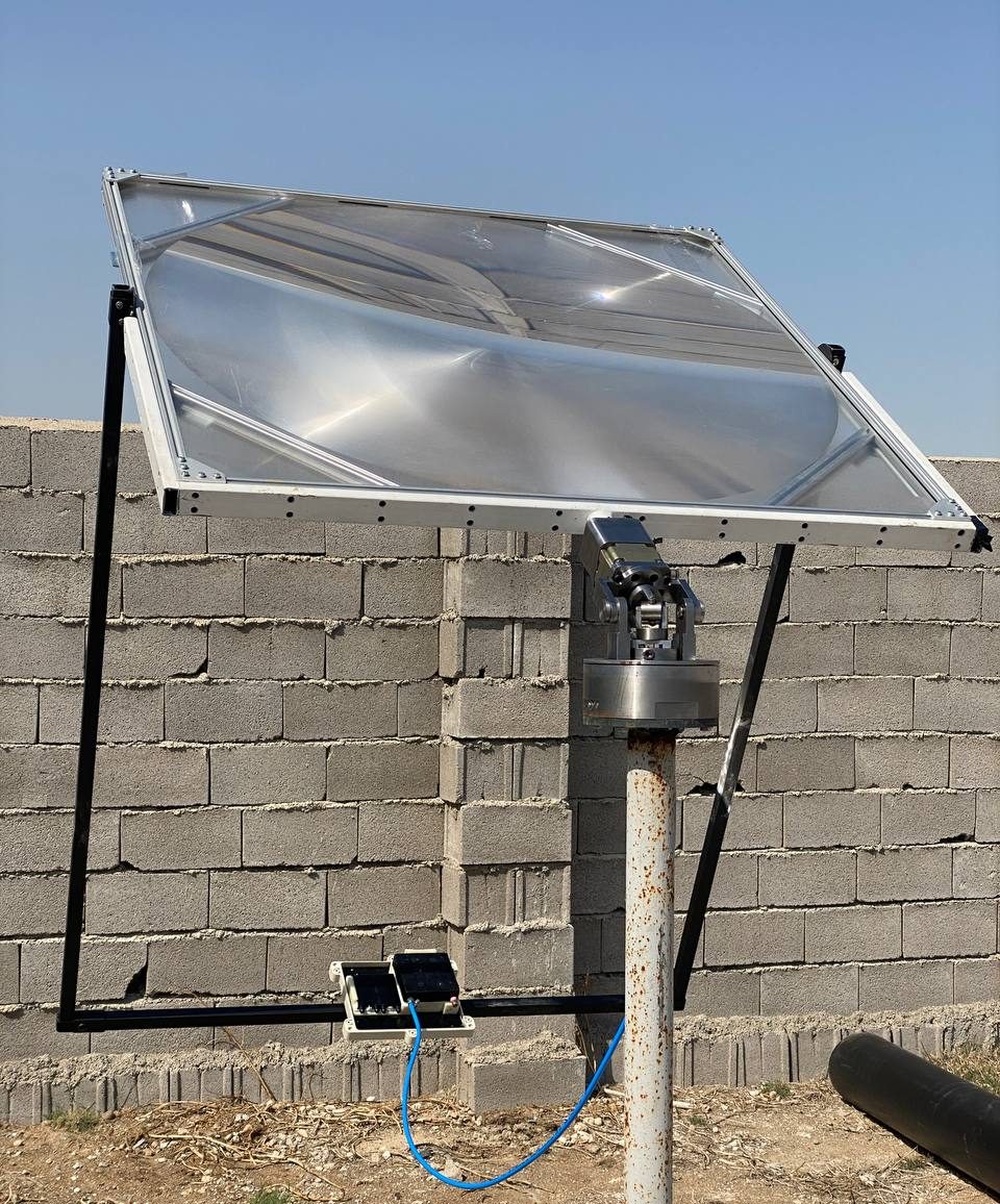 Tooloo’s tracking system is completely mechanical and passive. It uses a Fresnel lens to focus sunlight onto a central receiver, which contains a thermally responsive fluid. As the fluid heats up, it expands and activates a mechanical actuator that shifts the position of the collector. This single actuator and the mechanical tracking system control both axes, elevation, and azimuth, meaning the system follows the sun all day long, with no electronics, no grid power, and no sensors.